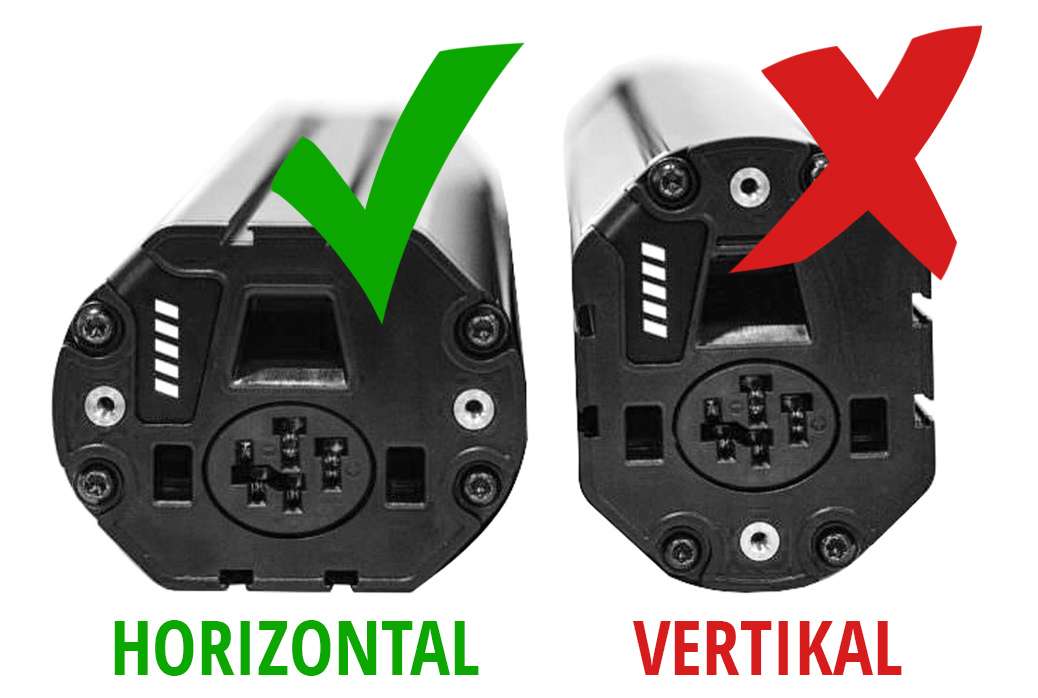 - Horizontal Einbauvariante in den Fahrradrahmen integrierbarer Akku