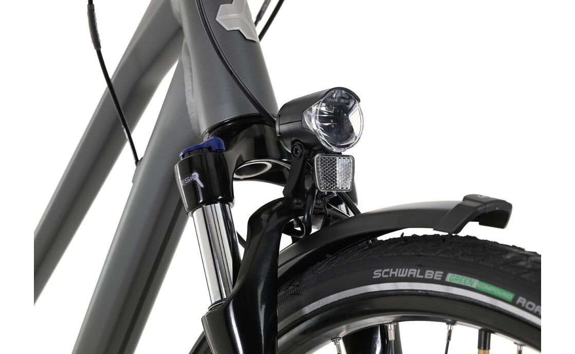 - Beleuchtung: mit der AXA Blueline 30 Switch Beleuchtung vorn mit einer Leuchtkraft von 30 Lux und der AXA Blueline Steady Beleuchtung hinten bist du auch im Dunkeln gut sichtbar und sicher unterwegs.