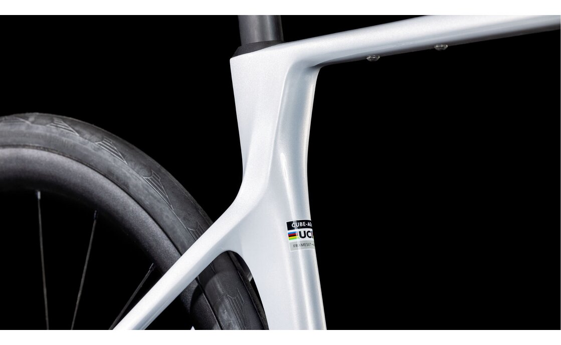 • Rahmen & Gabel: Der Rahmen aus C:62 Advanced Carbon zeichnet sich durch seine vollintegrierte Leitungsführung und die integrierte Sattelstützenklemme aus, was nicht nur die Ästhetik verbessert, sondern auch die Aerodynamik optimiert. Mit der Flat Mount Disc-Bremsaufnahme und der Option für eine Storage Box wird Funktionalität großgeschrieben. Die Cube CSL Evo Aero Gabel ergänzt das Gesamtbild durch ihre Tapered Bauweise und sorgt für eine stabile Lenkgeometrie ideal für ambitionierte Rennradfahrer, die sowohl Geschwindigkeit als auch Komfort auf langen Strecken schätzen.