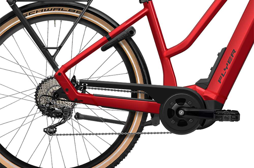 | Akku: | Size S: FLYER FIB 630 36V FIT (630 Wh / 17.75 Ah / 36 V); Range Extender ready Size S/M/L: FLYER FIB 750 36V FIT (750 Wh / 20.1 Ah / 36 V); Range Extender ready |