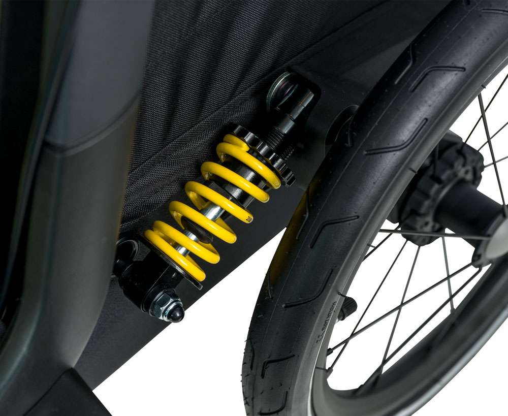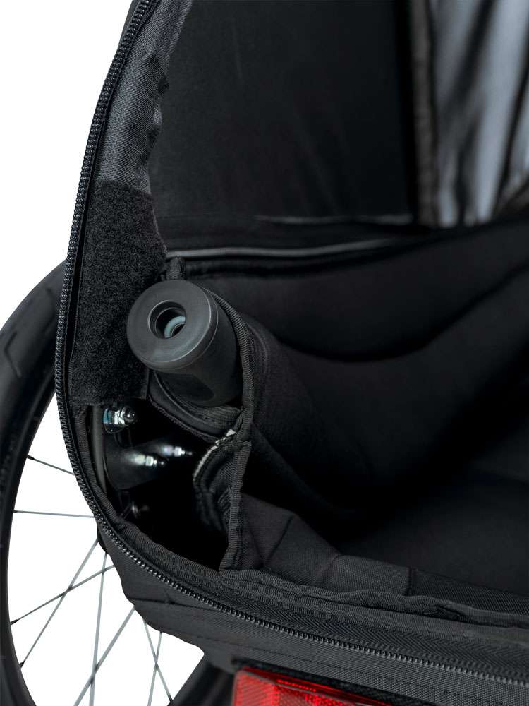 Für den optimalen Fahrkomfort hat der Hundeanhänger eine dreistufig einstellbare Federung.