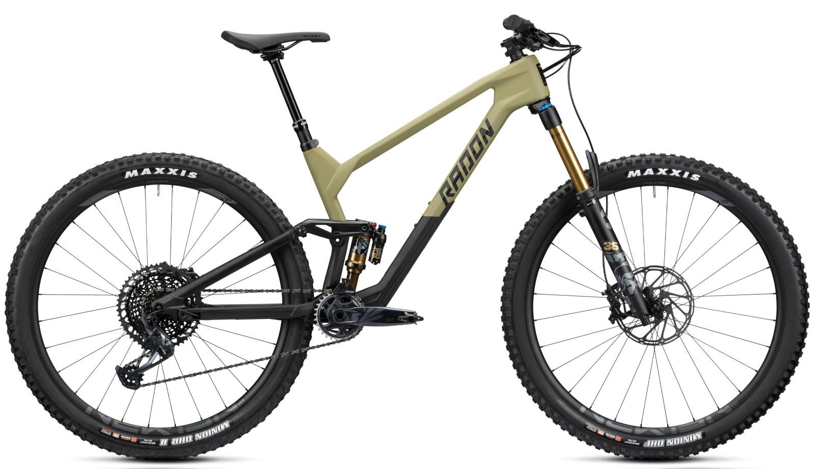 Die Fox Federelemente mit edlem Kashima Coating fügen sich nicht nur optisch harmonisch ins Gesamtbild, die Kombination aus 36 Float Factory FIT4 Gabel mit ihren 150mm Federweg sowie drei Modi und dem satt federnden Float X Dämpfer bügelt fast alle Unebenheiten weg und stellt ausreichend Reserven fürs richtig Grobe zur Verfügung. Harte Bremsmanöver hat die SRAM G2 RS Vierkolben-Scheibenbremse locker und fein dosierbar im Griff. Und umgekehrt findet die Beschleunigung über die 12-fach Eagle Schaltgruppe aus dem gleichen Hause statt. Damit steht Dir in jeder Situation der richtigen Gang zur Verfügung und eine 10-52T große Kassette ebnet auch die steilsten Anstiege. Das kompakte und breite Race Face Æffect R Cockpit und die solide SDG Tellis Dropper sorgen für die richtige Sitzposition und damit für Kontrolle, Sicherheit und maximale Bewegungsfreiheit in der Abfahrt. Ordentlich Grip ist durch die bewährten Maxxis Top-Reifen Minion DHF/DHR II in MaxxTerra 3C Gummimischung gewährleistet, die auf leichten und steifen Newmen Evolution SL A.30 Laufrädern montiert sind. Das SLIDE TRAIL 10.0 meldet sich startklar!