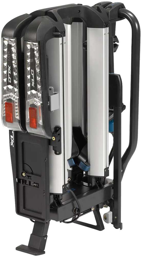 - Abklappbar, auch mit zwei Rädern auf dem Träger, sodass der Kofferraum jederzeit mühelos geöffnet werden kann